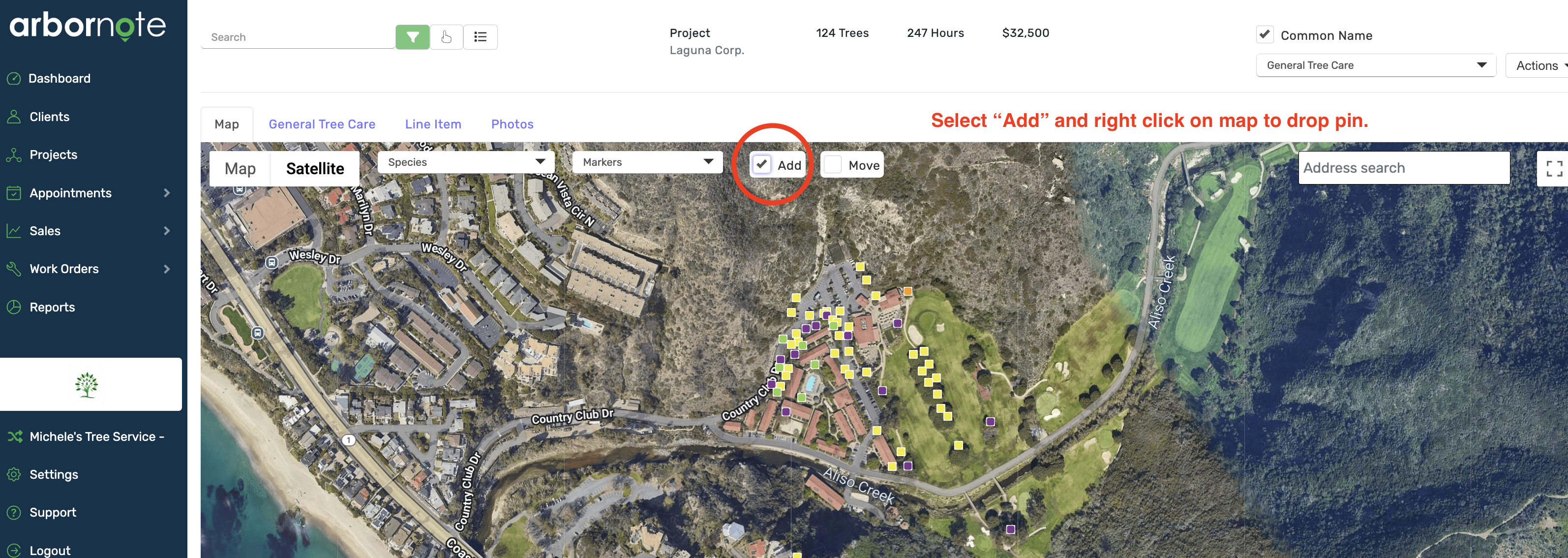 - Right-click on your desired location, and a tree pin will appear.