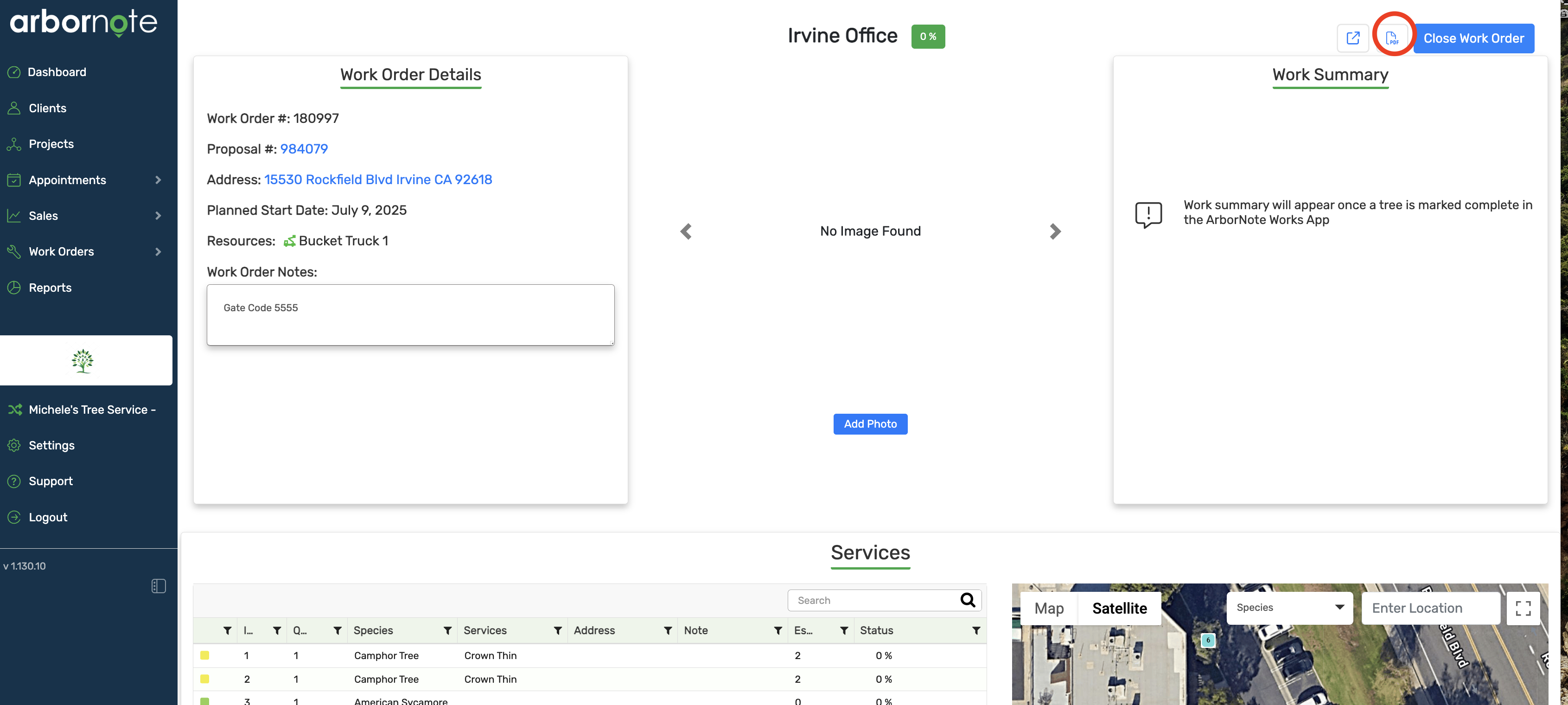 8. From the Work Order you can Click on the icon in the top right corner to copy the link. You can also access a PDF version of the work order by Clicking on the icon in the top middle of the screen.