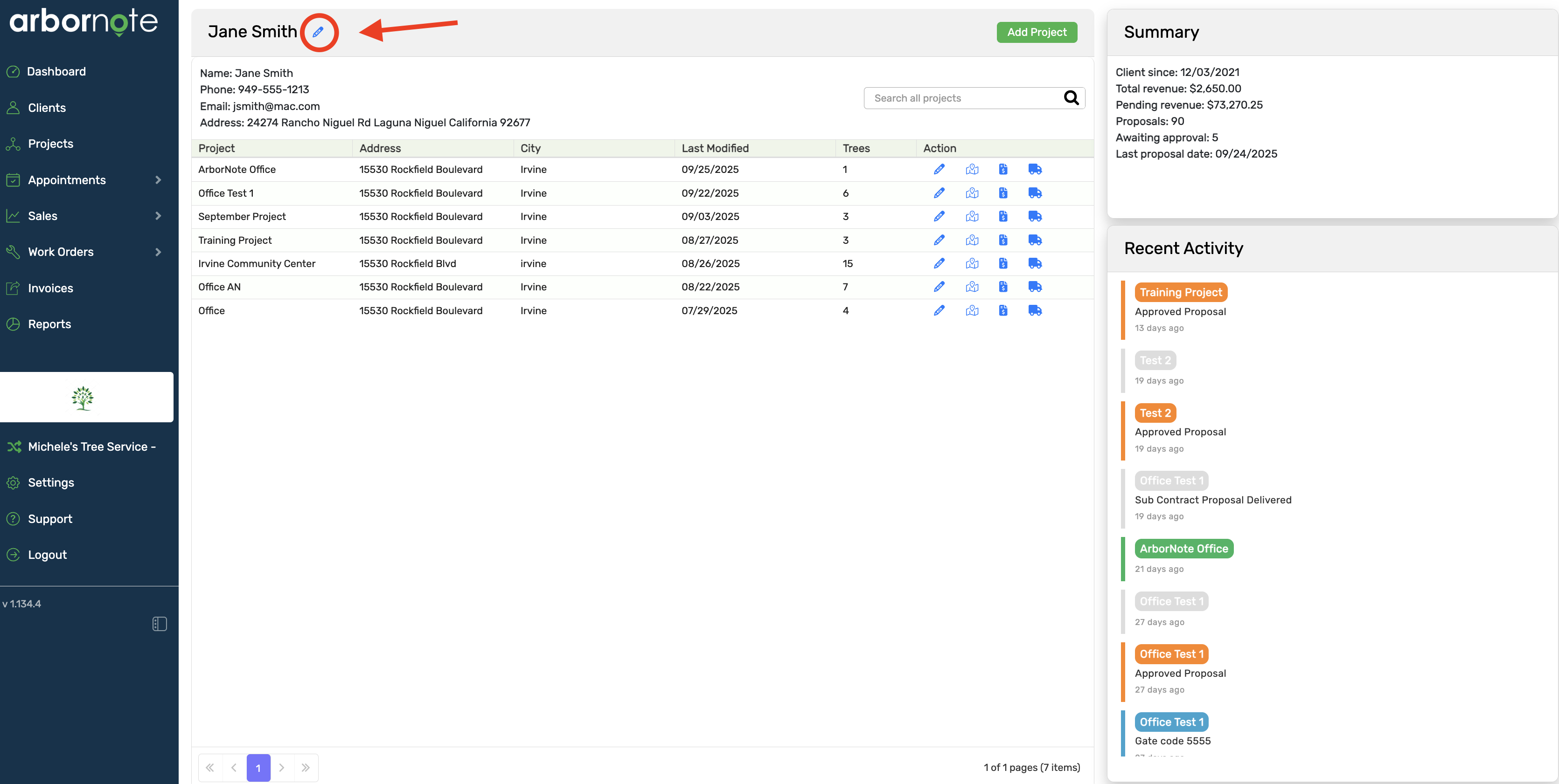 2. Double-click on a client name to open the client's summary view and then click on the pencil icon.