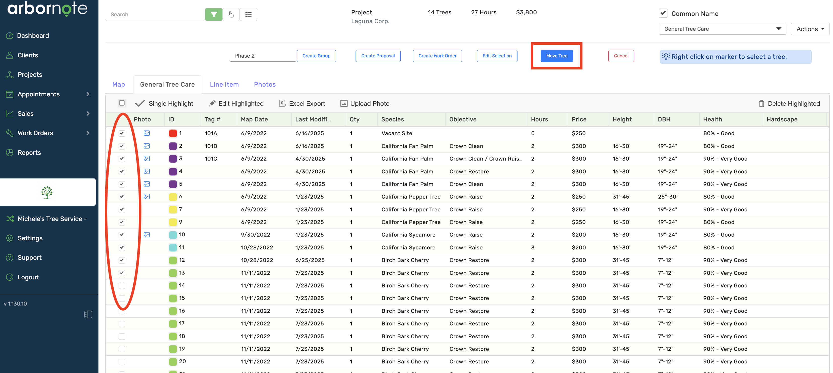 You can permanently move trees from one project to another in the ArborNote desktop app.