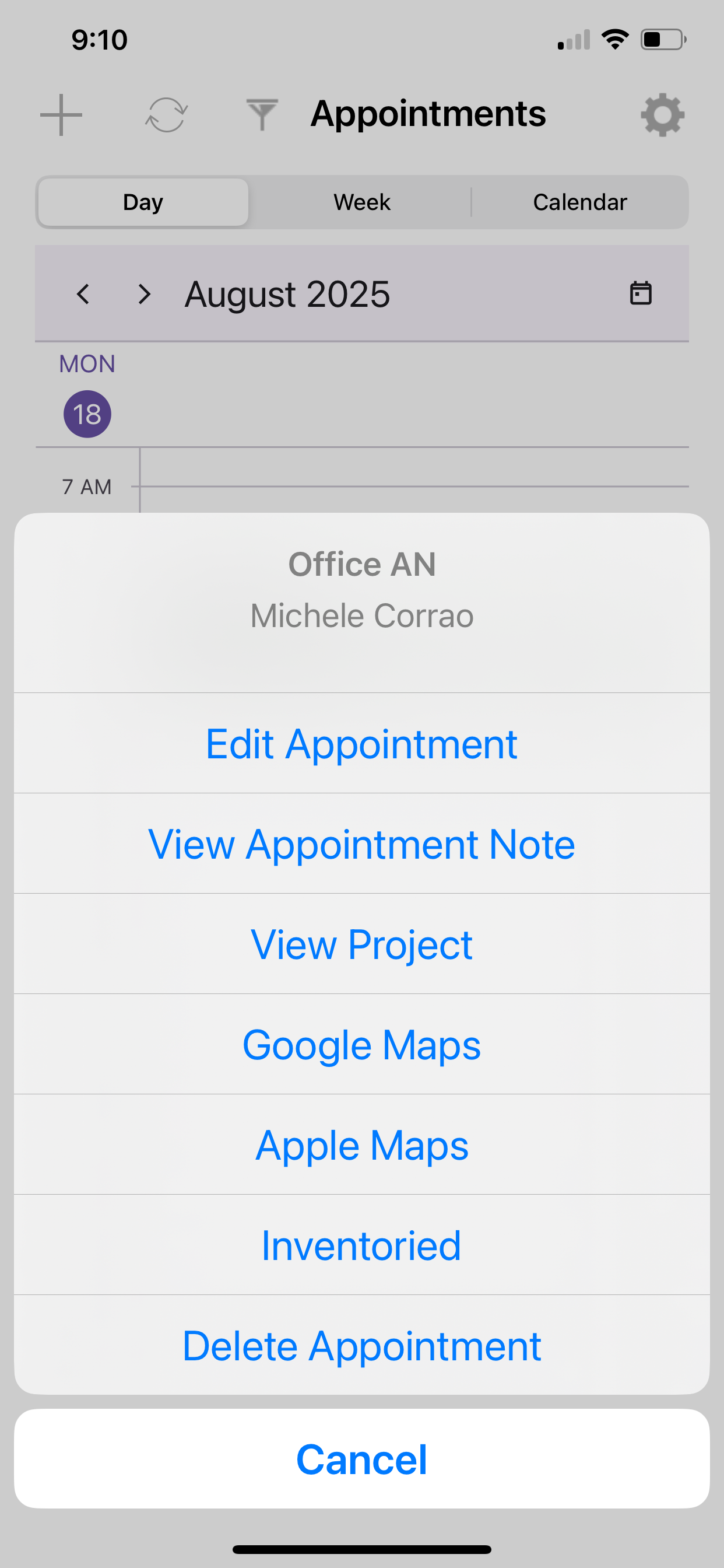 - Google/Apple Map Options: Tapping on these options will give driving directions to the estimate site.