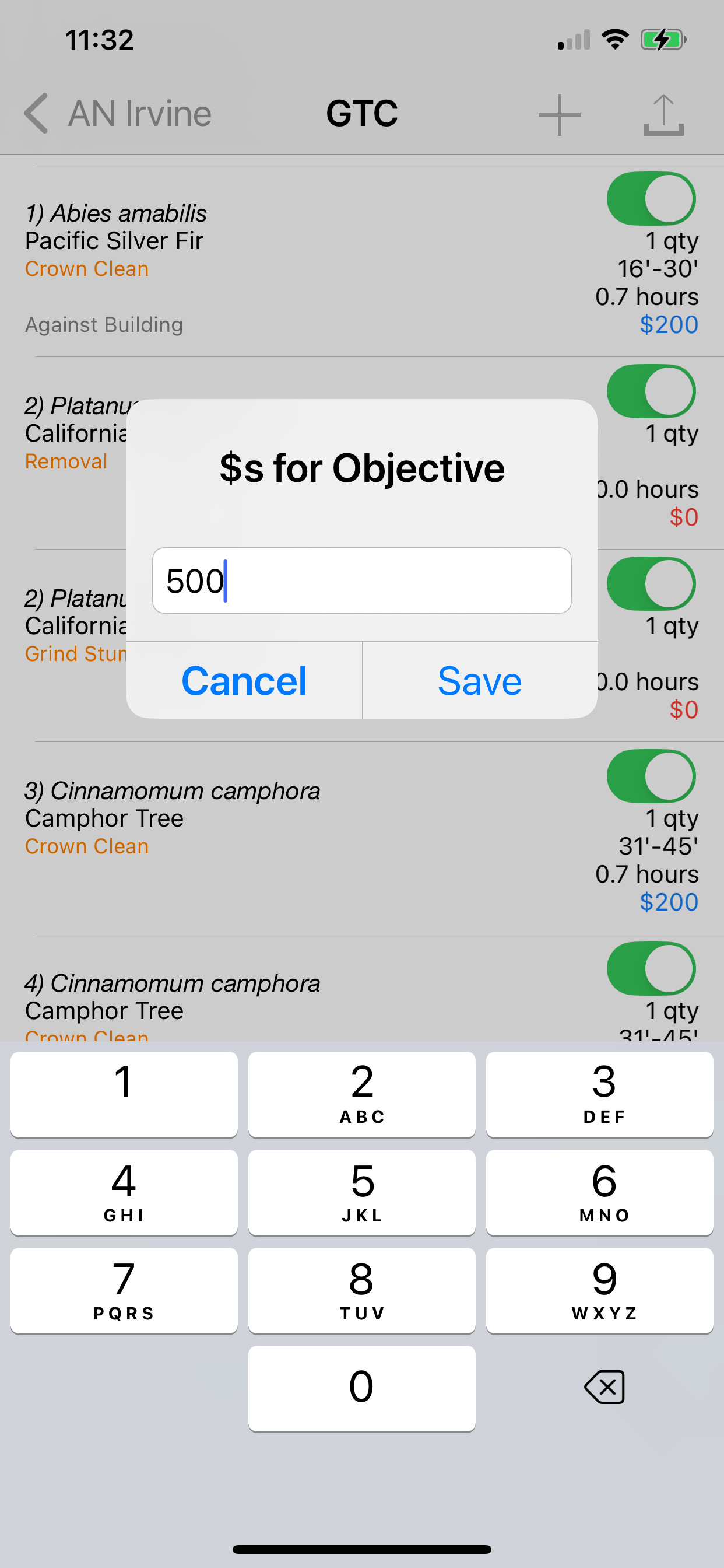 2. You will see there are now two line items for tree id#2. Tap on the first one for "Removal" and select pricing. Enter price and save. Repeat for the second line item "Grind Stump".
